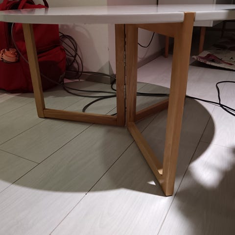 Annetaan lasinen, kestävä sohvapöytä. Ollut käytössä pitkään joten lasipinnasta löytyy sellaisia pieniä hiusnaarmuja jotka näkyy etenkin valoa vasten katsoen.