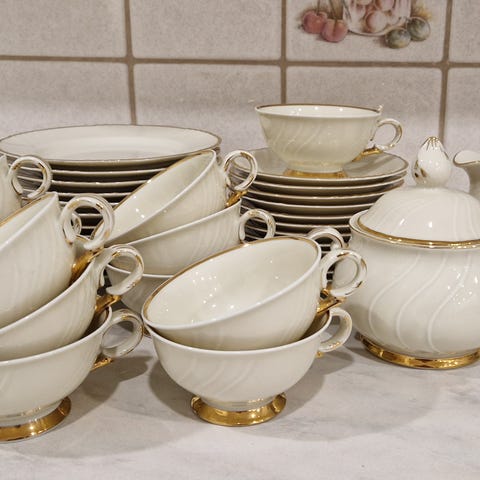 Sokeriastia, kermakannu sekä tarjoilulautanen, kaikki yhteensä 60€, voit myös tehdä tarjouksen, mielummin haku mutta voin lähettääkin vastuullasi sekä maksulla
