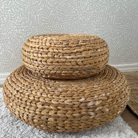 Itämainen rahi, sisältä styroksia ja istuimen alla muovivaahtoa. ”Mattokangasta”.