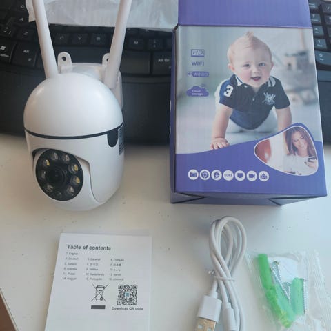 TP-Link Neffos sisävalvontakamera valkoinen. Pöydälle tai hyllylle asetettava kamera, jossa on kiinteä jalusta ja säädettävä kulma. Sopii sisätilojen valvontaan esimerkiksi kotiin tai toimistoon. Kamerassa on etupuolella laajakulmainen linssi ja sivussa liitäntäkaapelin paikka. Langattoman verkon tuki mahdollistaa kameran käytön ilman erillistä verkkokaapelia, jos malli sen tukee. Fyysiset mitat ovat kompaktit, joten kamera vie vain vähän asennustilas