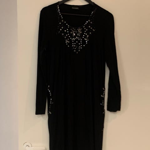 Sisters Point mekko, koko L. Musta pohjaväri ja monivärinen kukkakuosi. Materiaali on pääosin polyesteriä, joukossa elastaania tuomassa joustoa. Kainalomitta noin 53cm(joustaa) ja olka-helma 93cm.
