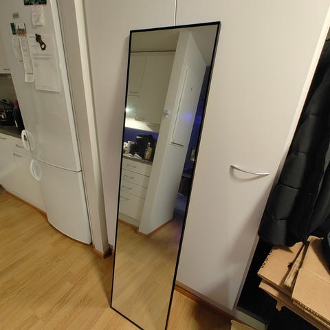 Mustaksi maalattu iso peili. Nouto Ikuri