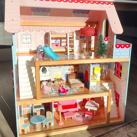 Hyvässä kunnossa. Lelut (matto, sohva ja 3 pientä nukkea) saa halutessaan mukaan.