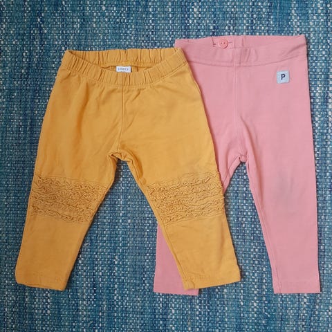Pop Lindex 80 housut legginsit leggarit pinkki keltainen frilla
