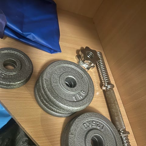 Myynnissä muovipinnoitteiset 5kg levypainot. Keskireiän sisähalkaisija 32mm.
