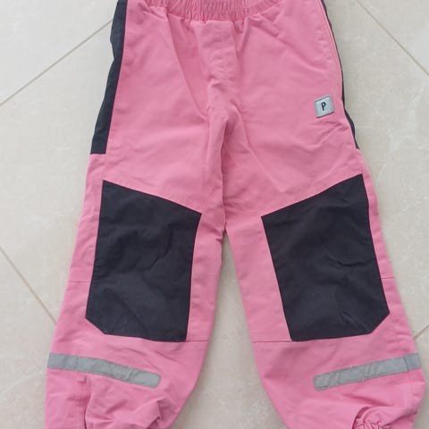 Popin mustat välikausihousut, koossa 116cm. Kahdella käytetty, joten käytön jälkiä jo hieman on. Polvissa aavistus pehmentymää ja heijastimissa kulumaa. Peppu siisti. Jalkalenksut on, mutta ei alkuperäiset. Nimikoitu.