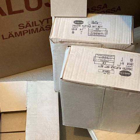 Myydään tarpeettomana seinälaatatat. Harmaata 200x400 2,8 m2, hinta 10 €/m2 ja isompaa 300×600 4,3 m2, hinta 20 € / m2.