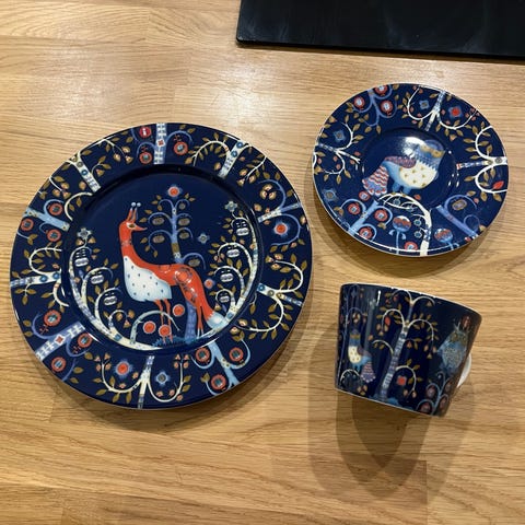 Iittala Taika lautanen 2 kpl sininen, merkitty Iittalan leimalla pohjassa.
