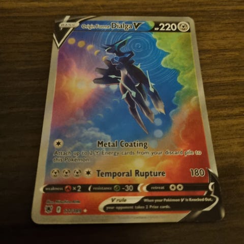 Pokémon Origin Forme Palkia V Space Juggler -keräilykortti. Japaninkielinen kortti, luokitus CGC 10. Kortti on suojakotelossa ja soveltuu keräilyyn ja säilytykseen osana Pokémon-korttikokoelmaa.