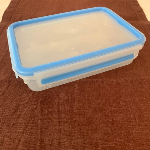 Emsan säilytysrasia / tiiviörasia. Materiaali muovia. Rasiassa on klipseillä suljettava kansi, jossa on vaaleansininen tiiviste, ja kansi on todella tiivis. Huom! Kannen tiiviste on tummempi kuin miltä kuvassa näyttää. Kestää mikron, pakastuksen ja konepesun. Koko kansineen n. 19 x 13 cm , korkeus n. 6 cm. Tilavuus n. 0,8 l. Rasian reunassa on kätevä mitta-asteikko. Rasiassa on jonkin verran kulumaa ym. (ks. kuvat), mutta on muuten siistissä kunnossa. En ehkä suosittelisi elintarvikekäyttöön, mutta jossain muussa käytössä on vielä ihan hyvä. Hinta 4€. Nouto Espoo (esim. Kauklahti / Lippulaiva). Voin myös postittaa, jolloin postituskulut lisätään hintaan.