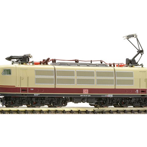 Prototype: German Railroad, Inc. (DB AG) class 103.1 (5th production series with extended engineer's cabs). C-C wheel arrangement. Built starting in 1970. Tourism train paint scheme of 1996. Use: TEE, EC, and Intercity trains.