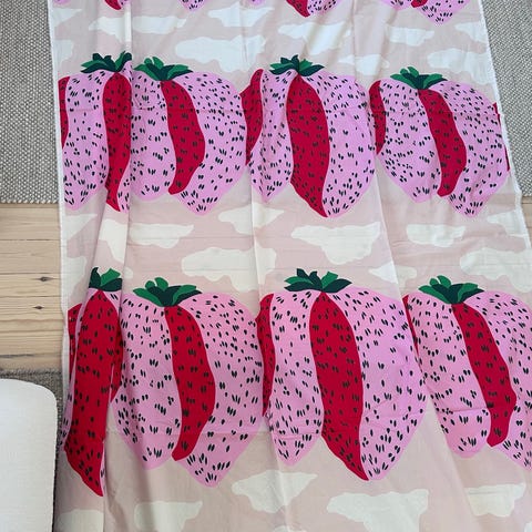Marimekon Siirtolapuutarha -puuvillakangas. Koko 130 x 145cm.