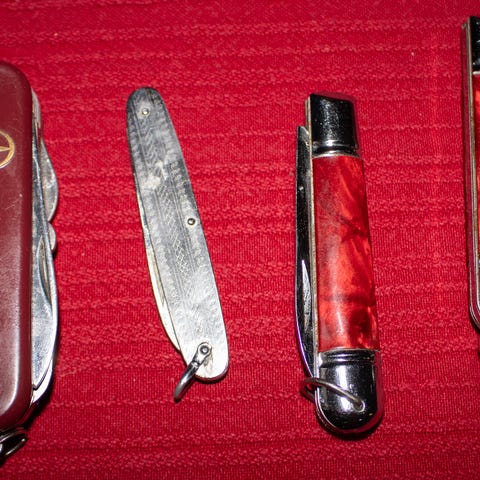 Saksalaisia Elosi-linkkareita 1930-luvulta 6 kpl. Alkuperäisessä käärepakkauksessa, käyttämättömiä mutta hiukan ajan patinoimia. Kaksi terää ja korkkiruuvi. Pituus terät sisällä 90 mm, pidempi terä ulkona 155 mm. Kotiinkuljetus järjestyy samaan hintaan Tampereella ja naapurikunnissa, lähetyskulut lisätään. Kysy!