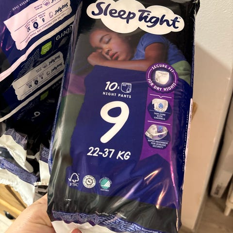 Lupilu Premium Diapers vaipat, koko 3, painoluokkaan 6–10 kg, käytetty noin kymmenen kappaletta eikä olleetkaan meille sopivan mallisia.