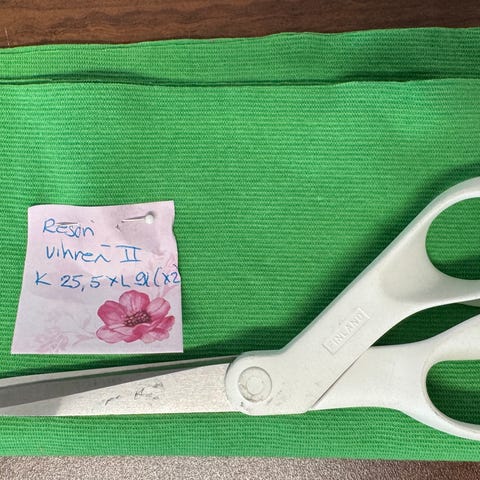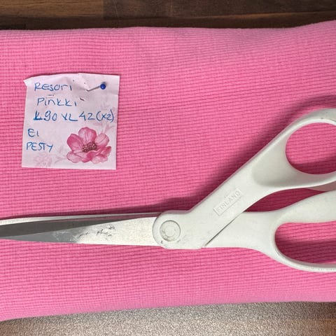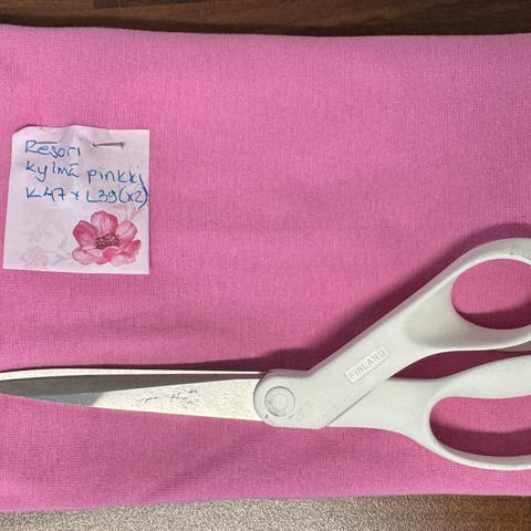 Pehmeä luonnonvaalea putkiresori. Hieman selkeämpi neulospinta ja myös reunastaan purkautuva.