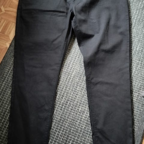 Vähällä käytöllä olleet valkoiset farkut, jämäkkä materiaali mutta pehmeät silti. Puuvillaa. Lahkeet hieman kapenevat, kuitenkin suora malli, tyyli revitty lahje.