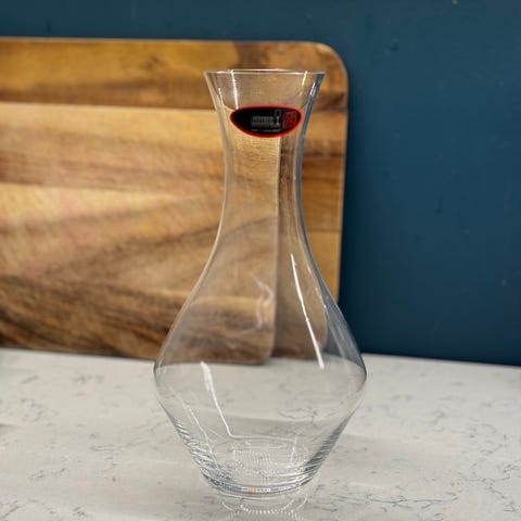 Riedel viinidekanteri Cabernet kirkasta lasia. 1l. Sopii viinin dekantointiin ja ilmaukseen sekä tarjoiluun. Muotoiltu leveällä pohjalla ja kapeammalla kaulalla, mikä auttaa viiniä hapettumaan. Soveltuu käytettäväksi kotona arki- ja juhlakattauksissa. Moitteeton kunto.
