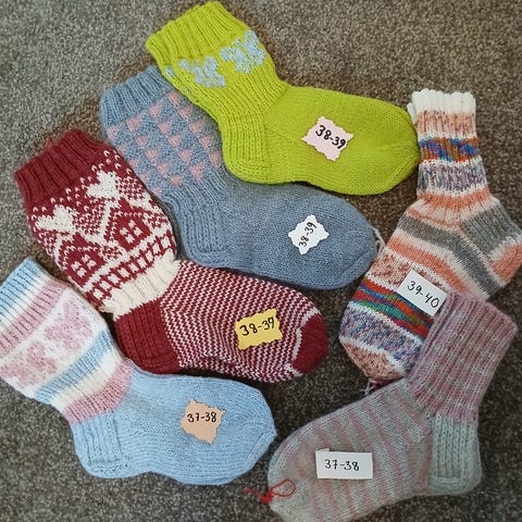 Lämpimiä villasukkia naisille ja miehille. Sukkalanka 75% villaa ja 25 polyamidia.