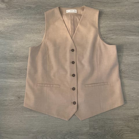 Myydään naisten käyttämätön uusi kankainen vuorellinen Mangon liivi, hopeavärisellä napeillä, koko L.