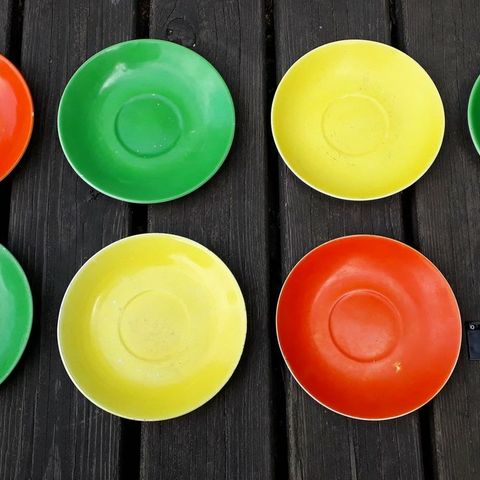 Hyväkuntoinen ja ehjä. Väri on hivenen haalistunut pesuissa. Kaunein - sanan alla erottuu kaksi tummaa viivaa ja vihreällä pohjalla on pieni valkoinen tahra.