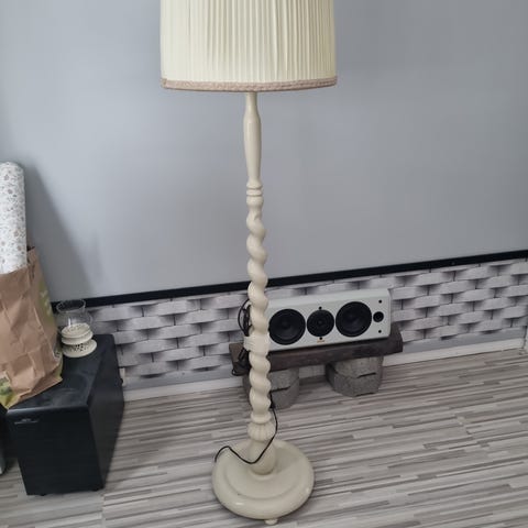 Iso, hyväkuntoinen lattiavalaisin. Musta varjostin, sisältä kultainen. Sisällä olevan led-lampun saa mukaan. Lindby-merkkinen. Saa osiin kuljetusta varten.
