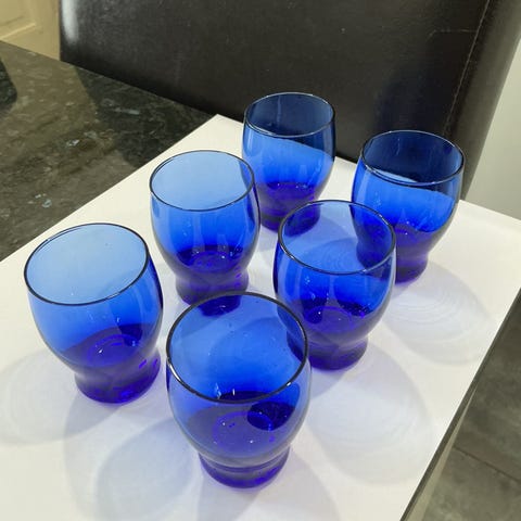 1960-1970-luvun meripihkan väriset pienet lasit. Sopii esim shotti- tai ryyppylasiksi.