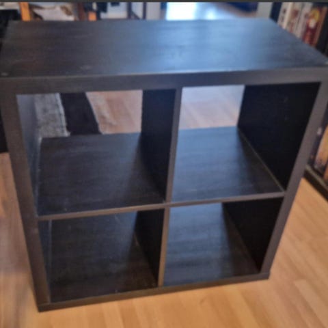 Ikean Kallax hylly 2x2. Ollut vain hetken eikä löytänyt pysyvää käyttötarkoitusta. Ei jälkiä. Väri on mattavalkoinen.