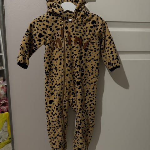 Myydään hyväkuntoinen Mini Rodinin leopardikuosinen fleecehaalari, koko 68/74. Tosi hyvänmallinen ja monikäyttöinen haalari, meni käytössä vielä 80 koossakin. Pinnassa jaloissa ja hupussa hieman nukkaa, mutta haalari on yleisilmeeltään siisti.