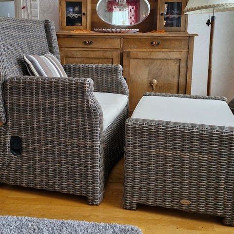 Ruskea rottinkinen sohva kahdelle. Ehjä, mutta säilytetty avoparvekkeella (jossa myös nyt talvella), joten tarvitsee kunnon puhdistusta ja ehkä jonkunlaista huoltoa. Sohvassa on kaareva selkänoja ja käsinojat sekä tiheä punosistuinosuus. Selkänojassa on koristeellinen avopunos, joka keventää ilmettä. Myynnissä muuton alta. Superedullisesti.