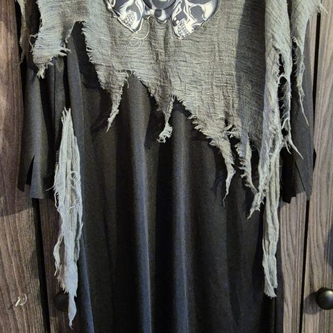 Naamiaisasu / Halloween puku. Kummitus/haamu. Ehjä ja siisti. Takana helmassa langanvetoja, ei haittaa käyttöä. Postitus ok, ei toridiiliä.