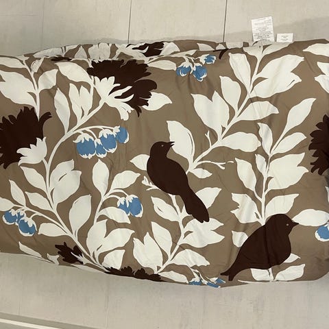 Vaalea beige. Ihan ok kunto, muutamia pieniä reikiä