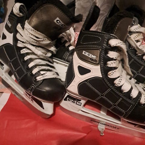 CCM jääkiekkoluistimet koko 37. Pohjallisen sisämitta 24cm. Luistimet hyvässä kunnossa, normaalia käytönjälkeä. Marjalassa. Hp. 25€.