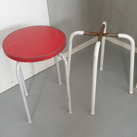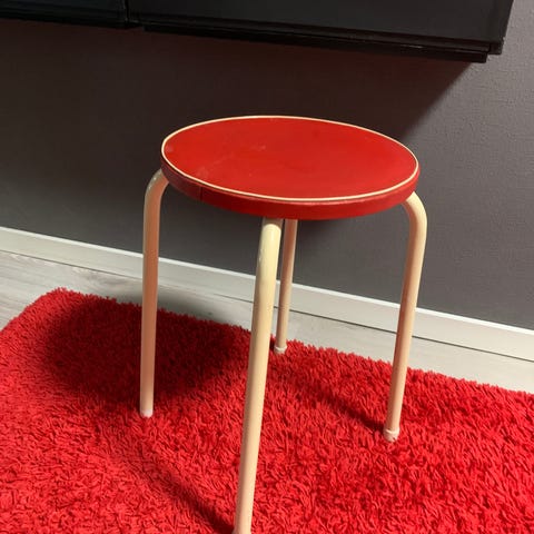 Kauniin sävyinen, koristeellinen jakkara. Itse maalattu, ei virheetön mutta ei naarmuja tms. Väri jotain kolmannen ja neljännen kuvan väliltä, melko vaalea.