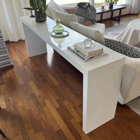 Kaunis ja jykevä sivupöytä. On painava, joten varmasti puuta. Näyttää antiikkiselta, mutta en osaa sanoa alkuperää.