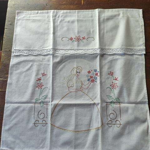En ole koskaan pessyt, kangas uuden näköistä…. Mutta vuosikymmenien takaa, aarre. Seinälle tai verhoksi korkeaan ikkunaan…pöytäliinaksi jne… alhaalla n 5 cm käänne ylhäällä kapeampi. Hinta 60 ja toimitus