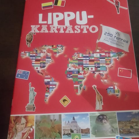 Lasten luukkukartasto kirja. Kuvitettu karttakirja lapsille, jossa on avattavia luukkuja ja aiheena maailman maat ja alueet. Sopii lasten maantiedon ja maailman tuntemuksen harjoitteluun sekä yhteiseen lukemiseen.