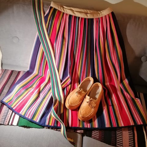 Mitat kai-kai 51 cm, pituus olalta 117 cm, hiha olalta 57 cm