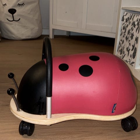 Myydään wheely bug mehiläinen. Tämä on se pienempi koko. Muuten tosi hyvässä kunnossa, mutta päällä saumoissa kulumaa. Renkaat rullaa hyvin. Nouto Rajamäeltä.