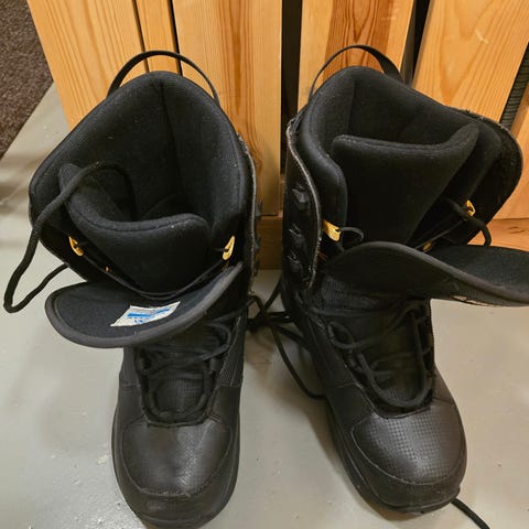 Myydään naisten Firefly lumilautakengät. Kengät ovat väriltään valkoiset kultaisilla yksityiskohdilla. Koon merkintä on mondo 25,0 (US 7, UK 5,5). Kengissä on nauhakiinnitys ja tarranauha varren yläosassa. Malli on suunniteltu lumilautailuun ja tarjoaa tuen nilkalle sekä pehmustetun sisäosan käyttömukavuutta varten.