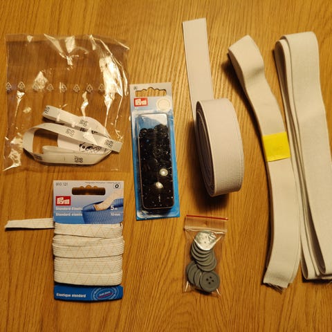 Sekalainen ompelutarvike- ja nappilajitelma. Mukana useita erikokoisia ja -värisiä nappeja, neppareita, renkaita, hakasia, solkia, lankaa sekä erilaisia ompelutarvikkeita pakkauksissa ja irtotavarana. Myydään kokonaisuutena.