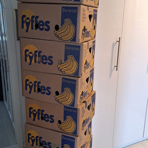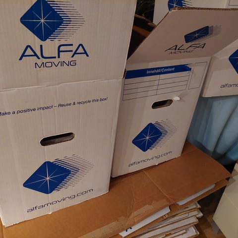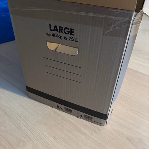 Clas Ohlssonin medium kokoisia pahvilaatikoita n. 20 kpl, large kokoisia n. 5 kpl.