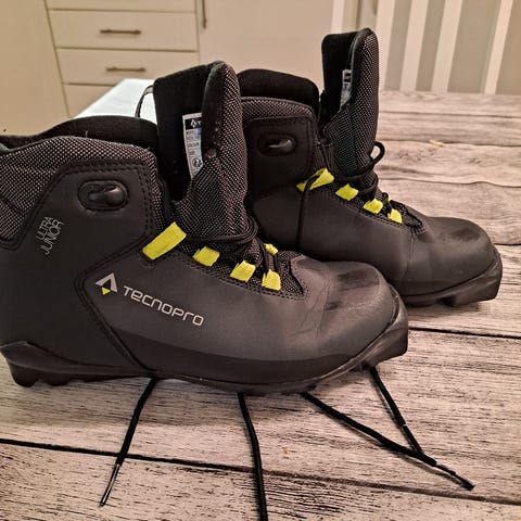Alpina T8 Jr hiihtomonot, koko 36. Väri musta valkoisilla ja punaisilla yksityiskohdilla. Monossa on nauhakiinnitys ja päällä vetoketjullinen suojaläppä. Pohja on yhteensopiva NNN-siteiden kanssa.