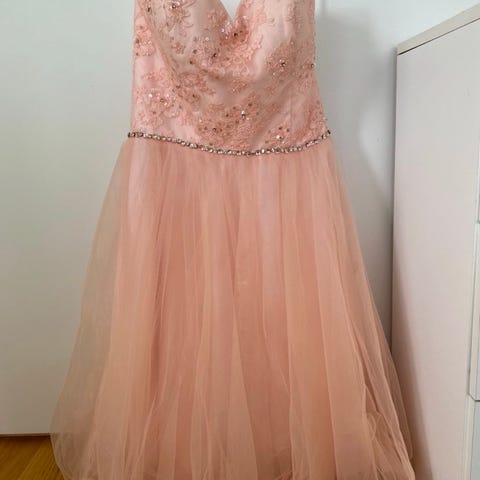 Kaunis, hempeän vaaleanpunainen satiinimekko. Sopii XS/S kokoiselle. Käytetty yhden kerran. Hartiahuivin saa kaupan päälle.