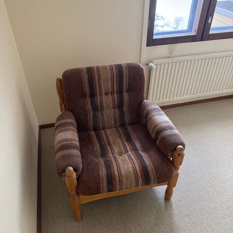 Annetaan Vintage-tyylinen kalustekokonaisuus, johon kuuluu useita nojatuoleja ja sohva. Huonekaluissa on kangasverhoilu eri väreissä, kuten keltaisen, vihreän ja punaisen sävyjä. Osassa nojatuoleista on puiset käsinojat ja jalat. Sopii esimerkiksi olohuoneeseen tai mökille istuinryhmäksi tai kunnostus- ja verhoiluprojekteihin. Huonekalut Konalassa, pikainen nouto. Tavarat ovat peräkärryssä, ja jos otat kaikki, voin tuoda ne maksutta pääkaupunkiseudulla osoitteeseesi nyt sunnuntain aikana. Soita tai txt o4oo-35o189 Mika.