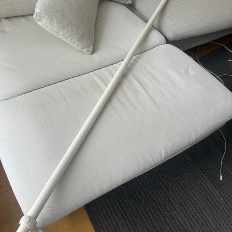 Valkoinen metallinen säädettävä verhotanko. Ei seinä kiinnikkeitä. Nouto Kuninkaanmäki.