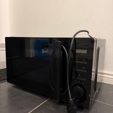Näyttö rikki, eli ajasta ei saa oikeen selvää. Mut muuten toimii moitteettomasti, näppäilee vaan 30sec aikaa lisää ja kyllähän nyt aikuinen ihminen osaa ilman kelloakin katsoa millon ruoka on lämmintä
