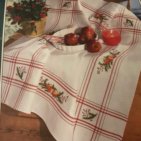 Ristipistopakkauksista tehty taulut kerran eli osa pakkauksen langoista käytetty.