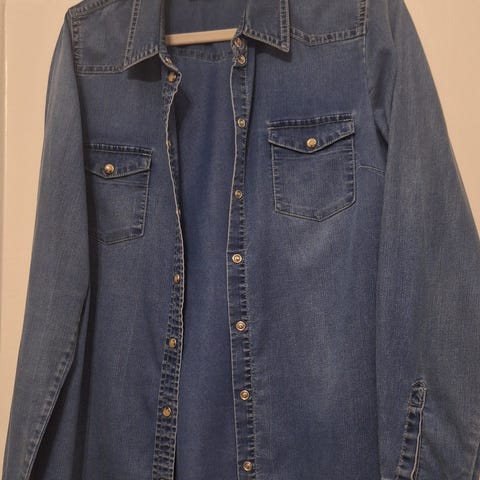 Dallas Jeans Company vintage farkkupaita, koko S. Helmiäisnepparit edessä, hihansuissa ja rintataskuissa. Väri viininpunainen ja materiaali 100 % puuvillaa. Kai-kai n. 59 cm.
