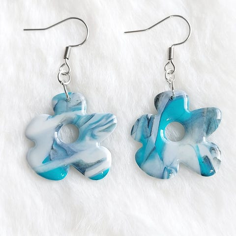 Muotoiltu fimomassasta. Pinnoitettu koruhartsilla, joka antaa korulle kestävän pinnan ja kiillon.