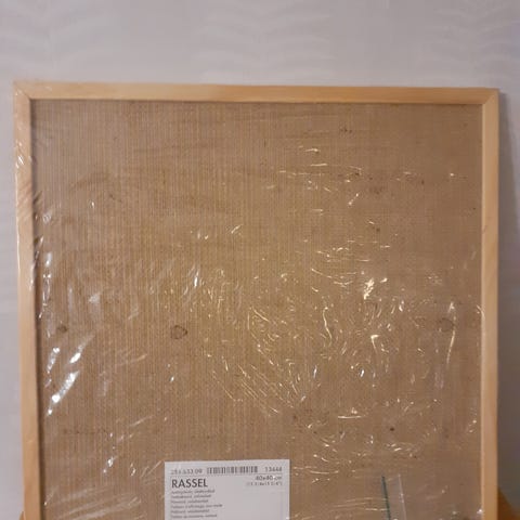 Myynnissä IKEA muistitaulu / ilmoitustaulu, jossa kangaspintainen beige/vaaleanruskea verhoilu.